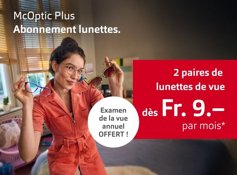 Découvrez McOptic Plus, l’abonnement lunettes à partir de seulement Fr. 9.– par mois*.